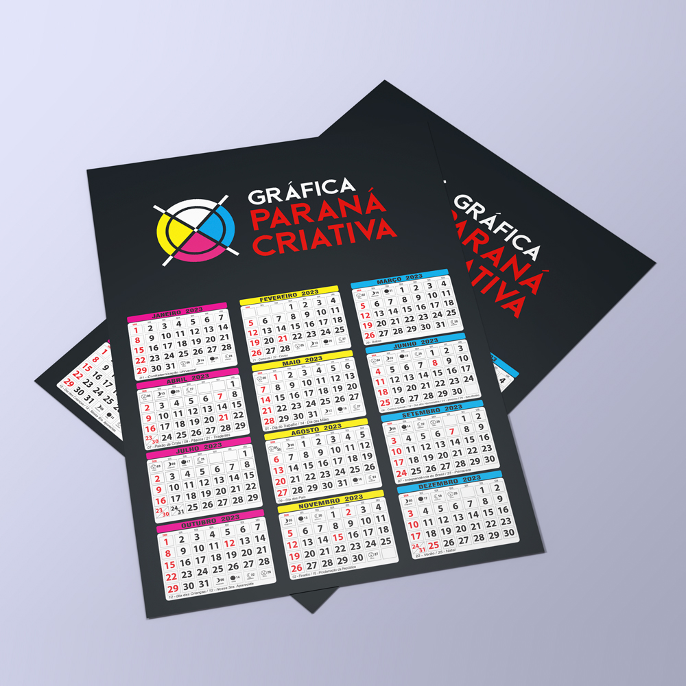 As Folhinhas Personalizadas da Gráfica Paraná são produtos úteis e personalizados para acompanhar o ano. Com design exclusivo, apresentam imagens, logotipos e informações relevantes. Feitos com materiais de qualidade, possuem impressão nítida e acabamento profissional. Essas folhinhas e calendários são ideais para presentear clientes, parceiros comerciais e funcionários, promovendo a marca durante todo o ano e fornecendo uma referência prática para datas importantes.